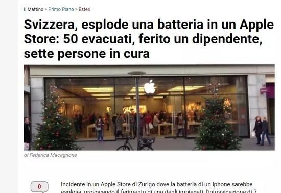 意大利ilMattino網(wǎng)站:瑞士蘋果零售店(App Store)iPhone手機電池爆炸,50人被緊急驅(qū)散,1名店員受傷,7人接受治療。