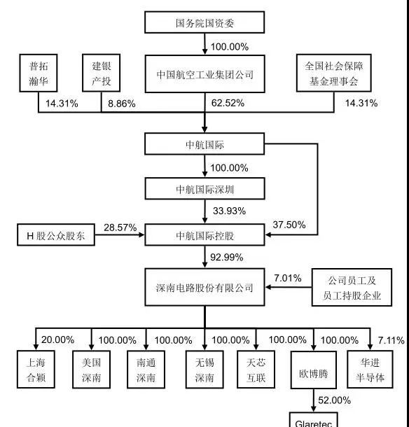 而從其股東結(jié)構(gòu)來看,可以清晰看出,其實(shí)際控制人是中航國際控股,而中航國際不僅僅控股深南電路,同時(shí)也投資了深天馬A!值得一提的是,深南電路同時(shí)也持有華進(jìn)半導(dǎo)體7.11%股權(quán)!