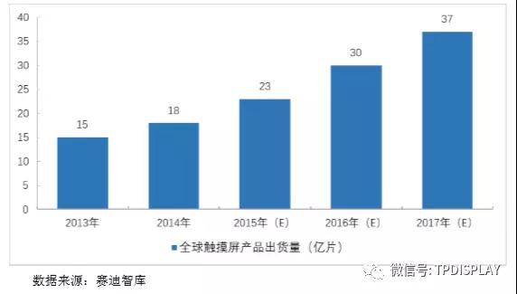 根據(jù)賽迪智庫(kù)的研究報(bào)告:2014年,我國(guó)觸摸屏產(chǎn)量約10億片,同比增長(zhǎng)25%,占全球總產(chǎn)量比例超過(guò)50%,初步估算產(chǎn)值可達(dá)35-40億美元。預(yù)計(jì)2017年,我國(guó)觸摸屏產(chǎn)業(yè)規(guī)??稍?014年基礎(chǔ)上再翻一番,骨干企業(yè)從技術(shù)、資金實(shí)力上將具備較強(qiáng)的國(guó)際競(jìng)爭(zhēng)力,全行業(yè)年工業(yè)產(chǎn)值可達(dá)到70億美元左右。