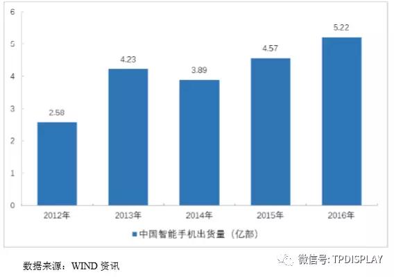 根據(jù)工業(yè)和信息化部相關(guān)統(tǒng)計(jì)數(shù)據(jù),中國(guó)智能手機(jī)出貨量在2014年-2016年連續(xù)增長(zhǎng),復(fù)合增長(zhǎng)率為15.84%,2016年出貨量達(dá)到5.22億部5。高性?xún)r(jià)比代表的中國(guó)智能手機(jī)品牌全球占比持續(xù)創(chuàng)新高,年增長(zhǎng)率明顯高于全球平均水平。我國(guó)智能手機(jī)市場(chǎng)規(guī)模的良態(tài)發(fā)展將繼續(xù)帶動(dòng)觸控行業(yè)產(chǎn)品市場(chǎng)規(guī)模的擴(kuò)大。