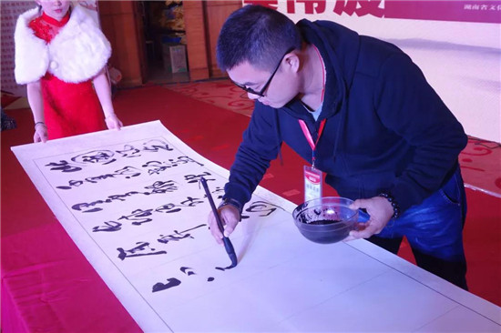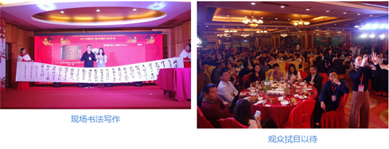 年會(huì)的開始是一份非常特殊的禮物,由3-TC東莞吉晨膠粘制品有限公司總經(jīng)理助理吳偉波先生上臺(tái)現(xiàn)場(chǎng)書法寫作《沁園春·雪》。