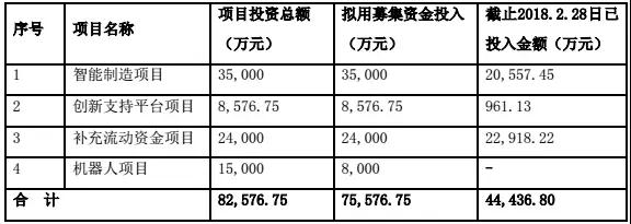 據(jù)了解,這是卓翼科技對2015年募集資金7.56億使用情況的部分變更。根據(jù)當(dāng)時的公告,創(chuàng)新支持平臺項目、智能制造項目以及補充流動資金項目的擬用募集資金投入金額分別為3.5億、1.66億及2.4億,具體如下表: