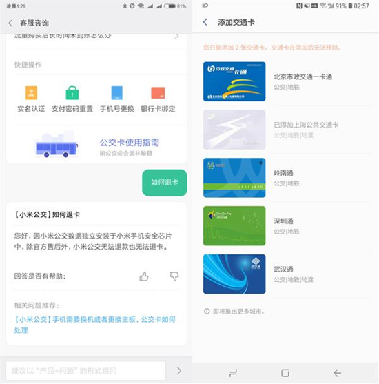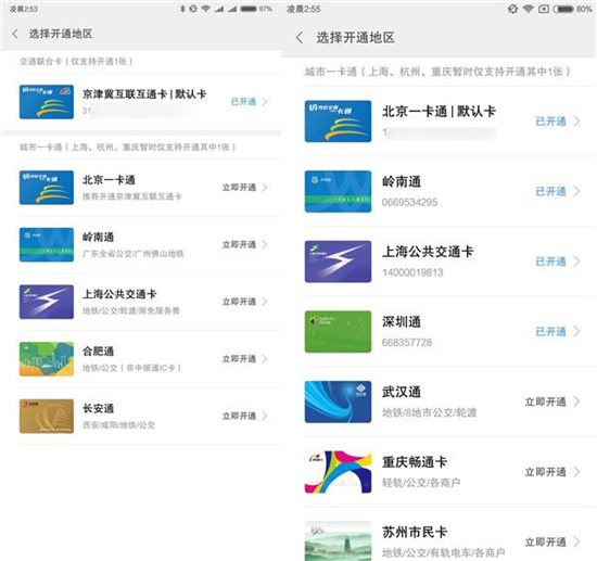 我在小米6上一共開(kāi)通了四張公交卡,出差的時(shí)候非常方便