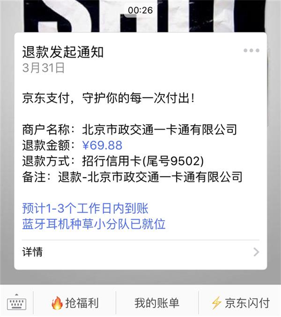 另一種比較嚴(yán)重的情況是開(kāi)卡失敗,但是卻扣了錢(qián),北京一卡通APP的說(shuō)明中表示開(kāi)卡失敗后會(huì)原路退還扣費(fèi),3月31日凌晨,我開(kāi)卡失敗的同事已經(jīng)收到了退款。