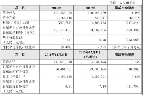 從中興通訊近兩年的業(yè)績來看,其2016年營收為1012.34億人民幣,與2015年的1001.86億人民幣相比同比增長1.04%,營業(yè)利潤為11.66億人民幣,與2015年的3.20同比增長263.70%,虧損總額為7.68億人民幣,歸屬上市公司普通股股東的凈虧損為23.57億人民幣,而2015年歸屬上市公司普通股股東的凈利潤為32.08億元,即2016年凈利潤與2015年相比同比下降了173.49%。