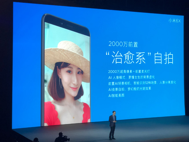 至于小米6X的前置攝像頭,林斌透露其實(shí)規(guī)格與副攝像頭相同,也為IMX376,達(dá)到2000萬(wàn)像素并配有柔光燈,提供AI單攝背景虛化,并且專門針對(duì)女性自拍以及12項(xiàng)背景進(jìn)行更多優(yōu)化,號(hào)稱是“更懂女生的前置人像模式”。
