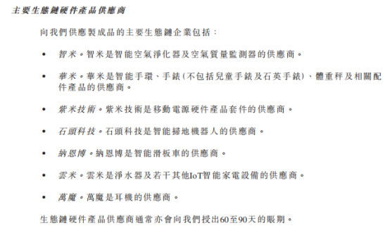 生態(tài)鏈硬件供應(yīng)商包括智米、華米、紫米技術(shù)、石頭科技、云米、萬(wàn)魔等,而互聯(lián)網(wǎng)服務(wù)供應(yīng)商則包括游戲廠商騰訊、網(wǎng)易,視頻供應(yīng)商包括愛(ài)奇藝、搜狐、網(wǎng)絡(luò)文學(xué)則包括閱文集團(tuán)等!