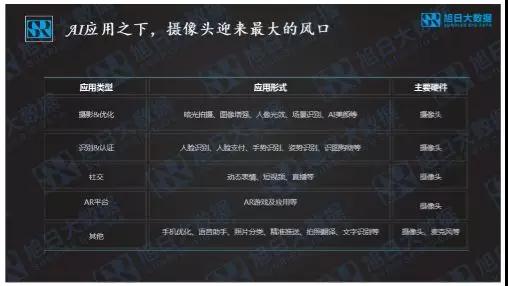 那么AI手機的快速發(fā)展又會給手機產(chǎn)業(yè)鏈企業(yè)帶來哪些機會呢?李春麗女士將AI手機應(yīng)用主要分為四大類,分別是攝影和優(yōu)化、識別認(rèn)證、社交、AR平臺。而這些應(yīng)用都需要用到攝像頭。并且除了攝影優(yōu)化以外,其他三大應(yīng)用中攝像頭的功能更多的是一個信息輸入的載體,可以見攝像頭對于AI手機的重要性。因此,李春麗表示“在AI手機這個浪潮之下,攝像頭產(chǎn)業(yè)成為最大的風(fēng)口,這也是旭日大數(shù)據(jù)一直以來堅定看好的一個應(yīng)用方向。”