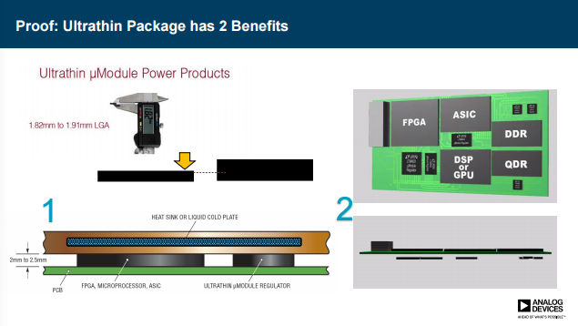 梁再信表示,不僅要把產(chǎn)品的尺寸做小,還要做薄,在很多系統(tǒng)設(shè)計(jì)里面背板的高度是有限制的,可能就是允許放08、05、03電容的厚度,那么傳統(tǒng)的電源模塊顯然是不能滿足要求的,把產(chǎn)品做薄就是為了能貼著背板或者跟主芯片分享散熱器。因此,ADI今后的另一大方向便是所有的電源模塊都會(huì)有一個(gè)薄款的產(chǎn)品出現(xiàn)。