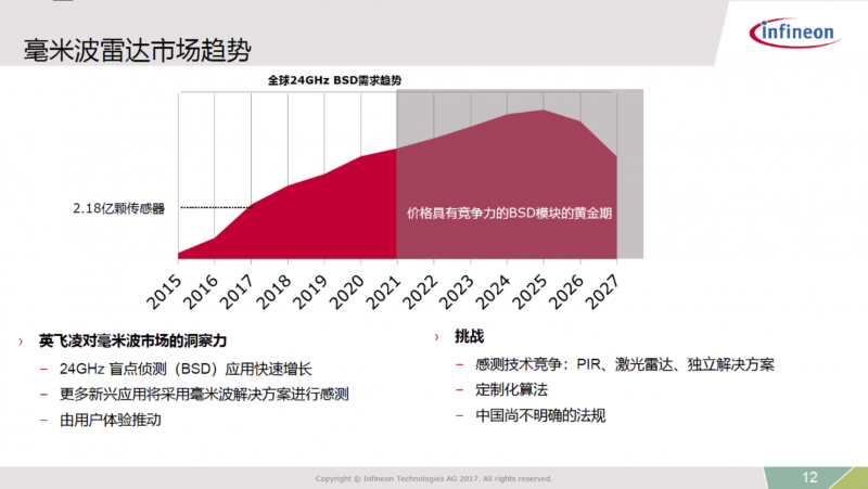 除24GHz雷達(dá),60GHz雷達(dá)芯片的研發(fā)投入也是英飛凌毫米波雷達(dá)產(chǎn)品線發(fā)展的重點(diǎn)。