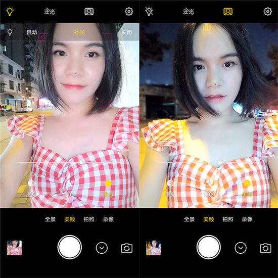暗光環(huán)境,正是Y75s展示自拍實力的時候了。在1600萬像素攝像頭打底下,開啟逆光HDR和柔光燈后,即使身邊再陰暗也能拍出亮麗自然的自拍照。特別對臉部進行了提亮,光線均勻的打在臉上,不僅有效提升了皮膚質(zhì)感和膚色細節(jié),還給眼睛加上了“電眼”效果,blingbling閃光迷人。但遇到光線弱的情況,使用柔光自拍還有助于照片亮度,讓自拍照整體效果再提升一個等級。