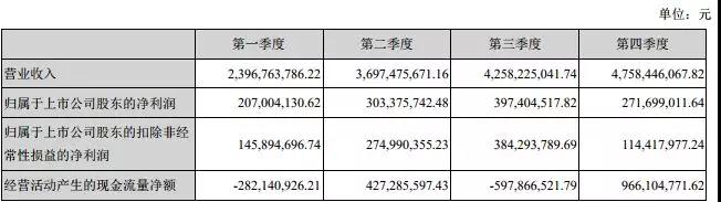 從去年單季度營(yíng)收來看,合力泰在Q1、Q2、Q3、Q4季度實(shí)現(xiàn)營(yíng)業(yè)收入分別為23.97、36.97、42.58、47.58億元,歸屬于上市公司股東的凈利潤(rùn)分別為2.07、3.03、3.97、2.72億元。由此看來,合力泰營(yíng)收除了年增長(zhǎng)速度快之外,單季度營(yíng)收穩(wěn)步增長(zhǎng)。此外,在去年單季凈利潤(rùn)方面,前三季度均呈現(xiàn)穩(wěn)步增長(zhǎng),第四季度稍有下降,但仍比第一季度高出0.65億元。