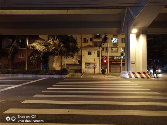 此外,vivo X21i沒有因?yàn)楣饩€不足而導(dǎo)致解析力出現(xiàn)明顯的下降,可以看見以及光條條件不佳,柏油路以及樹葉的細(xì)節(jié)依舊清晰,白平衡表現(xiàn)也是一如既往的穩(wěn)當(dāng)。