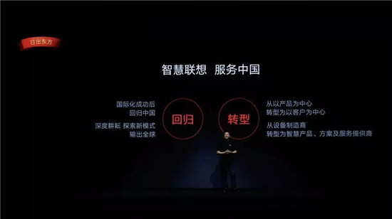在6月5日聯想新品發(fā)布會上,聯想表示:“在國際化成功以后,聯想回歸中國,將深度耕耘探索新模式,并將產品輸出全球,同時也將進行轉型,從以產品為中心轉型為以客戶為中心,從設備制造商轉型為智慧產品、方案以及服務供應商!”