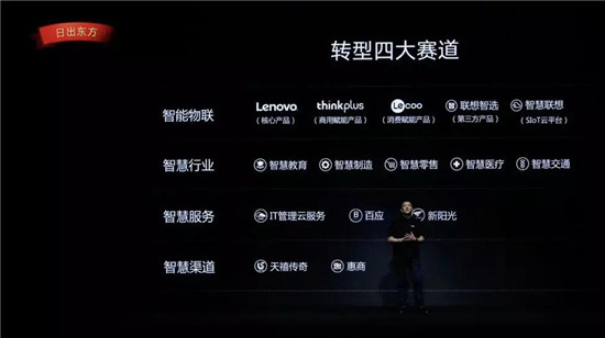 劉軍在發(fā)布會上介紹說,為了實現戰(zhàn)略愿景,聯想中國將業(yè)務轉型方向規(guī)劃為智能物聯、智慧行業(yè)、智慧服務、智慧渠道四大賽道。其中,智能物聯賽道聚焦即將到來的智能物聯時代,更加積極地為客戶提供“設備+云”產品及服務。目前,該業(yè)務已經面向商用和消費兩個市場,分別推出了ThinkPlus和Lecoo兩個品牌,加之聯想自主品牌的云應用,業(yè)務體系得到初步構建。