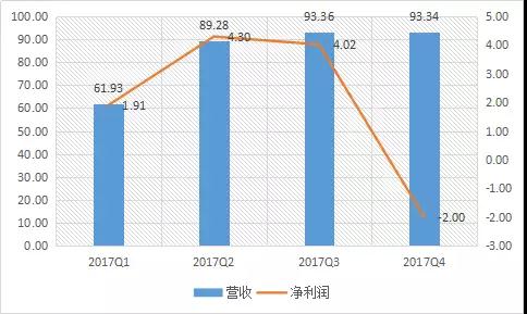圖2 歐菲科技2017年單季度營收與凈利情況(單位:億元)