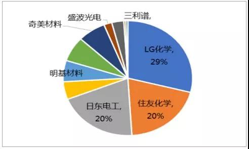 目前,兩種膜材的主要供應(yīng)商均為日韓企業(yè), PVA 膜的主要供應(yīng)商為日本可樂麗,占 70%全球市場份額,國內(nèi)皖維可為黑白偏光片提供 PVA 膜; TAC 膜的主要供應(yīng)商是日本富士膠片和柯尼卡,樂凱已為國內(nèi)偏光片企業(yè)供應(yīng)部分 TAC 膜。