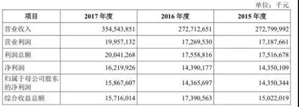 據(jù)其招股書顯示,富士康工業(yè)互聯(lián)網(wǎng)總資產(chǎn)為1485.96億元,但是其負(fù)債高達(dá)1204.13億元,負(fù)債率高達(dá)81.03%,而2015年-2016年分別為45.72%、42.89%,可見其2017年負(fù)債率快速上增。此外,從其近些年來的營收來看,2015年-2017年營收分別為2727.99億元、2727.12億元、3545.43億元,相對應(yīng)的凈利潤分別為143.50億元、143.65億元、158.67億元,顯而易見,其2017年營收與2016年相比同比增長高達(dá)30.00%,而2016年營收與2015年相比則出現(xiàn)微幅下降!