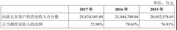 從客戶群體來看包括包括 Amazon、Apple、ARRIS、Cisco、Dell、HPE、華為、聯(lián)想、NetApp、Nokia、nVidia 等,報告期內(nèi),發(fā)行人對前五名客戶的營業(yè)收入合計數(shù)占當(dāng)期營業(yè)收入的比例分別為 76.81%、78.63%和72.98%,客戶集中度較高。