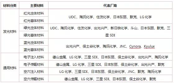 圖表2:OLED材料分類及主要代表廠商