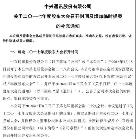 公告內(nèi)容顯示:根據(jù)本公司和全資子公司深圳市中興康訊電子有限公司與美國商務部工業(yè)與安全局達成的《替代的和解協(xié)議》,全體董事將于公司2017年度股東大會審議選舉出新任董事之時辭去公司董事職務以及所擔任的董事會下設各專業(yè)委員會的職務。
