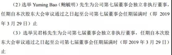 C、選舉3名獨立非執(zhí)行董事的普通決議案。選舉蔡曼莉、Yuming Bao(鮑毓明)、吳君棟等3人為公司第七屆董事會非獨立董事。