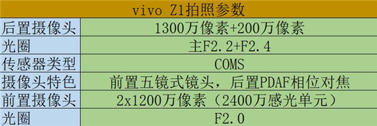 vivo手機一直以拍照出色而著稱,vivo Z1同樣在拍照方面花了不少心思。在硬件方面,vivo Z1后置采用了雙攝模組,擁有1300萬像素+200萬像素的組合,最大光圈為F2.2,前置則為2*1200萬像素(2400萬感光單元)。同時AI人工智能算法的加入,相信能夠提升整體的效果。