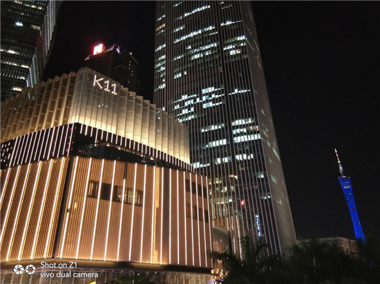 在夜間成像方面,Z1同樣展現(xiàn)出了高素質(zhì)的表現(xiàn)。在夜景純凈度上,vivo Z1有效地控制住了噪點的數(shù)量,整體觀感明亮通透。細(xì)節(jié)表現(xiàn)上,就連室內(nèi)細(xì)節(jié)也能透過玻璃看得一清二楚。