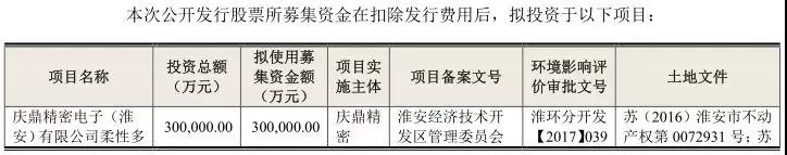 除了深南電路以外,2018年P(guān)CB產(chǎn)能上市的重磅戲可能當屬鴻海集團子公司鵬鼎控股在深交所上市。2018年5月份,鵬鼎控股(深圳)股份有限公司(以下簡稱“鵬鼎控股”)在證監(jiān)會發(fā)布招股說明書,公司擬在深交所公開發(fā)行不低于2.31億股,不超過6.93億股,計劃募集資金約54億,用于慶鼎精密電子(淮安)有限公司柔性多層印制電路板擴產(chǎn)項目以及宏啟勝精密電子(秦皇島)有限公司高階HDI印制電路板擴產(chǎn)項目。