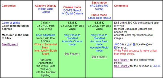 -創(chuàng)紀(jì)錄的色彩準(zhǔn)確度(0.5 JNCD),在視覺上與完美沒有區(qū)別,而且?guī)缀蹩隙ū痊F(xiàn)有絕大多數(shù)智能手機(jī)、超高清電視、平板電腦、筆記本電腦和電腦顯示器要好得多。