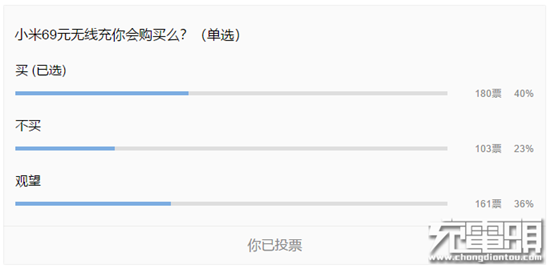近日我們發(fā)起了一個(gè)用戶購買意向的投票,咨詢大家小米69元無線充你會(huì)購買么?不出意外,結(jié)果顯示有購買意愿的占據(jù)絕大多數(shù),當(dāng)然持觀望態(tài)度的也不少,可能大家不敢相信會(huì)有這么低的價(jià)格吧。