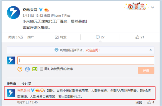 代工廠方面,據(jù)充電頭網(wǎng)透露,小米69元無線充代工廠為DBK迪比科。目前小米的部分充電寶,大部分車充,全部AA電池充電器,大部分多口充電器,都出自DBK代工。
