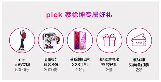 在京東商城上搜索X23代言人“蔡徐坤”即可進(jìn)入“蔡徐坤的甜蜜邀約”活動(dòng),點(diǎn)亮3城地標(biāo),每解鎖一張地標(biāo)大片,官方就會(huì)送出一份福利(蔡徐坤見(jiàn)面會(huì)門票or蔡徐坤同款手機(jī))。成功預(yù)定后還可享12期免息和獲贈(zèng)移動(dòng)電源、藍(lán)牙音箱等豪禮。同樣,國(guó)美、天貓、蘇寧等渠道均有各自的預(yù)售驚喜活動(dòng)。