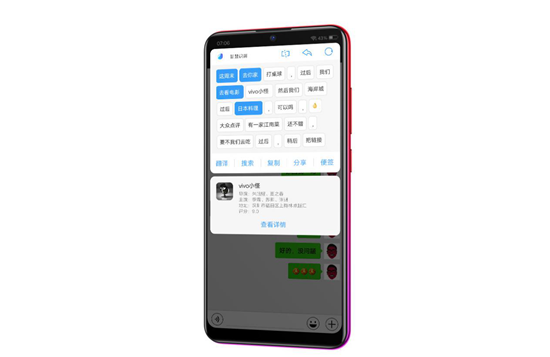出色硬件性能是日常使用的基礎(chǔ),人機交互的優(yōu)化往往能夠帶來更高品質(zhì)的體驗。為強化系統(tǒng)的易用性,vivo Y93加入了Jovi智慧功能,內(nèi)置的智慧識屏、智慧場景、智慧桌面能夠在日常生活中帶來諸多的便利。同時Jovi智能語音助手也是能夠讓用戶在解放雙手的情況下,完成更多復(fù)雜操作。