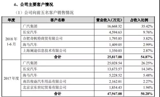 在客戶端,鐵將軍的前五大客戶為廣汽集團(tuán)、長安汽車、合肥奇帆特商貿(mào)有限公司、海馬汽車、上海闌途信息技術(shù)有限公司,根據(jù)報告期的數(shù)據(jù)顯示,今年上半年,鐵將軍前五大客戶營收占比為54.78%,其中,廣汽集團(tuán)和長安汽車站收入的比例為45.18%。