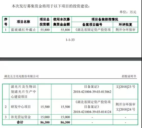 此次五方光電擬在深圳證券交易所公開發(fā)行股票不超過5040萬股,發(fā)行后總股本不超過20160萬股。發(fā)行募集資金8.63億元,募集資金將用于藍(lán)玻璃紅外截止濾光片及生物識別濾光片生產(chǎn)中心建設(shè)項目、研發(fā)中心項目及補(bǔ)充營運(yùn)資金。