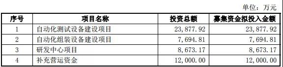 此次總計募集5.24億元,用于自動化測試設(shè)備、自動化組裝設(shè)備、研發(fā)中心以及運營資金等4個項目。