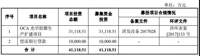 據(jù)披露,斯迪克股份計劃通過本次IPO募集資金約4.11億元,其中1億元用來償還銀行貸款,其余將投向OCA光學(xué)膠膜生產(chǎn)擴建項目。