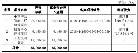 此次總計募資4.5億元,主要用于電聲產(chǎn)品智能工程建設(shè)、研發(fā)中心項目建設(shè)以及補充流動資金!而在2017年底,其同行朝陽電子也曾IPO,但是最終被否!