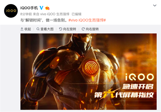 今天下午,iQOO官方微博發(fā)聲:與“解鎖時(shí)間”做一場(chǎng)告別,正式宣布iQOO手機(jī)將搭載最新的第六代屏幕指紋技術(shù),這是繼2018年12月發(fā)布NEX雙屏版第五代屏幕指紋技術(shù)之后的再次更新。據(jù)統(tǒng)計(jì),自2018年1月全球首款屏幕指紋手機(jī)vivo X20 Plus正式發(fā)布開始,vivo屏幕指紋手機(jī)產(chǎn)品銷售已累計(jì)突破一千萬(wàn)臺(tái)。