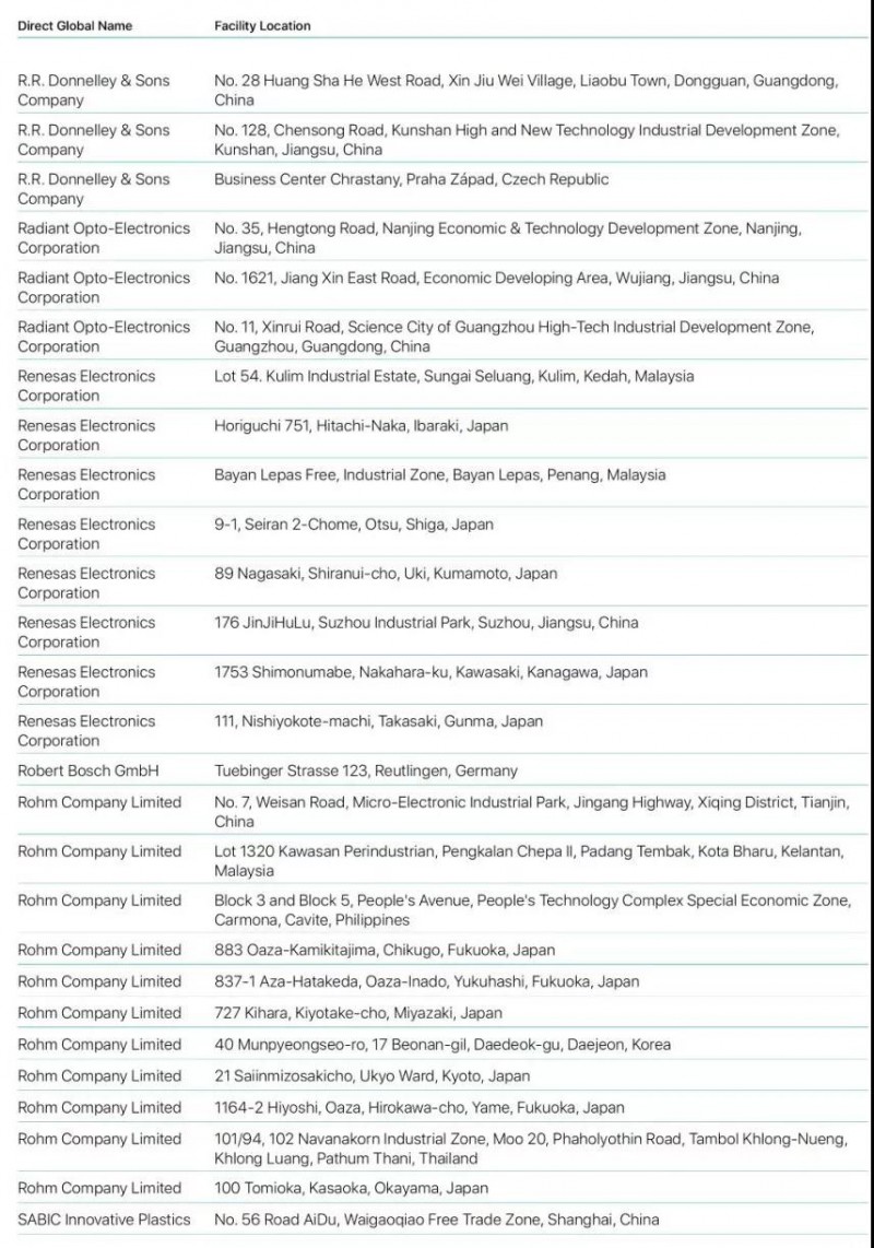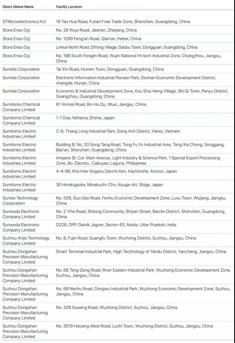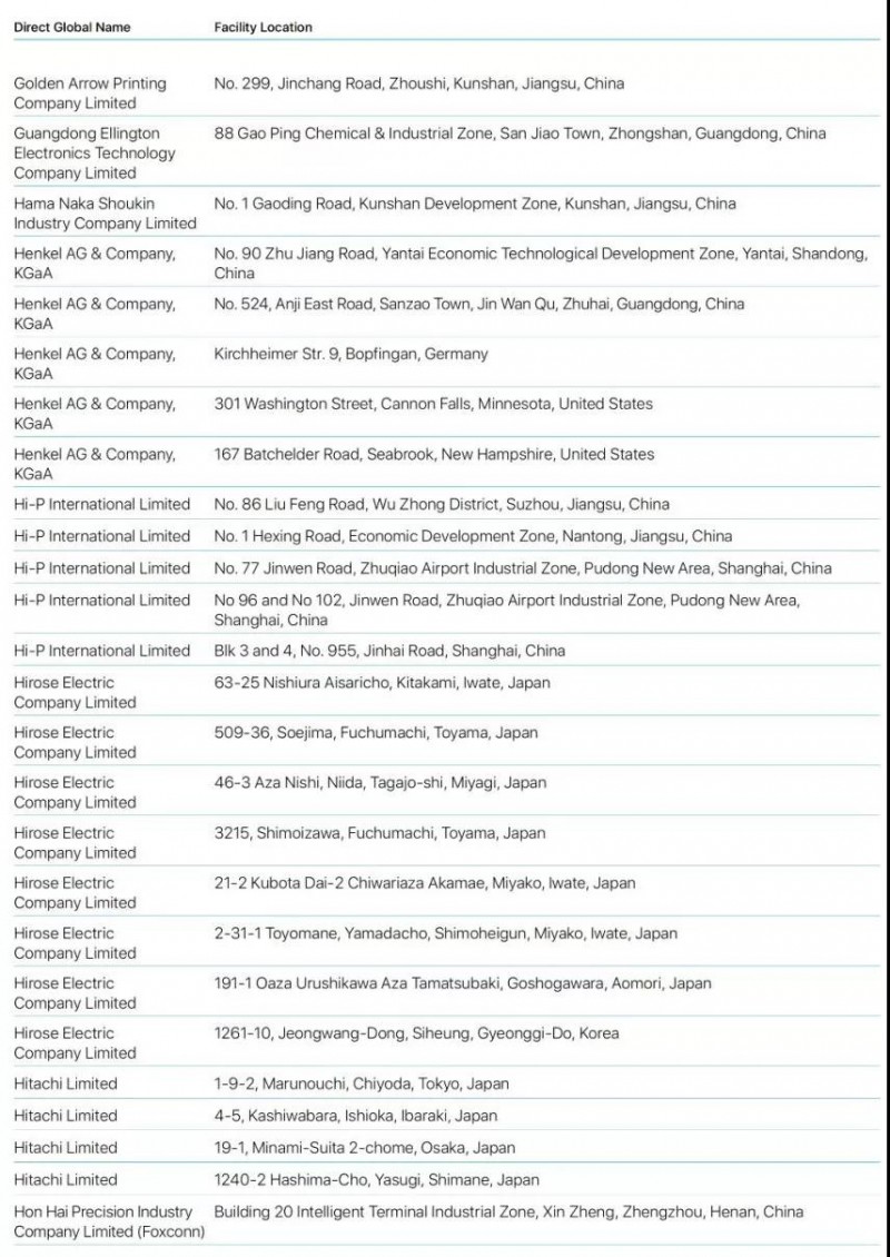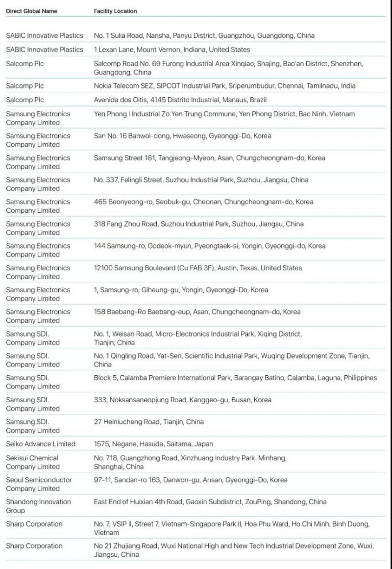 Bumchun Precision Company Limited:韓國廠商,此前為蘋果提供音響模塊及其他組件。原部分年份沒有出現(xiàn)在名單中。