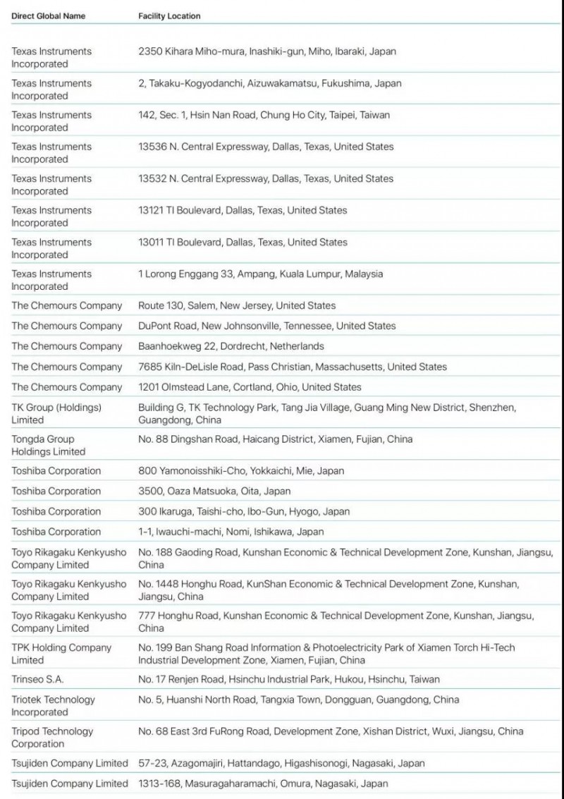 Brady Corporation(貝迪):此前貝迪為蘋果提供精密模切方案,可用于手機(jī)解決方案和其他消費(fèi)類電子解決方案。但隨后被寶德集團(tuán)收購,所以在最新的這份名單中,并未出現(xiàn)貝迪的名字,無法確定貝迪是否還在為蘋果供應(yīng)產(chǎn)品!