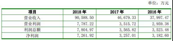 從過(guò)去三年的營(yíng)收來(lái)看,其2016-2018年?duì)I收分別為3.79億元、4.66億元、9.05億元,相對(duì)應(yīng)的凈利潤(rùn)分別為3182萬(wàn)元、3257萬(wàn)元、7261萬(wàn)元!