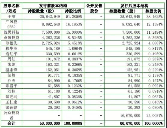據(jù)查詢得知,豪恩聲學(xué)第一大股東為王麗,其占發(fā)行后股份比例為38.46%,第二大股東則是廣風(fēng)投(廣東省科技風(fēng)險(xiǎn)投資有限公司),而廣風(fēng)投為國(guó)有持股單位,第三大股東則是藍(lán)思科技,其于2018年7月公告表示,以9000萬(wàn)的價(jià)格收購(gòu)豪恩聲學(xué)15%股份!