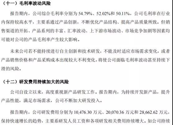 也正是由于Anker為一家研發(fā)型企業(yè),這也促使其毛利率超過,2016年-2018年,其毛利率盡管出現(xiàn)了小幅度下降,但毛利率依然分別高達(dá)54.79%、52.02%、50.11%。相對應(yīng)的研發(fā)費用分別為1.04億、2.01億、2.86億,占其凈利潤超過了50%。