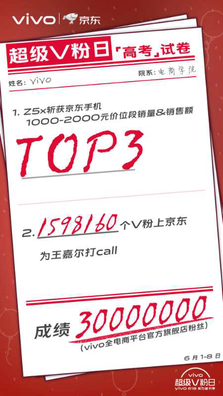 作為國(guó)產(chǎn)頭部手機(jī)品牌,vivo已經(jīng)在上兩個(gè)月的超級(jí)粉絲日,通過形式多樣的福利放送,受到眾多消費(fèi)者的喜愛和歡迎。而在本月的V粉日中,vivo攜手全新機(jī)型,同樣在“高考”中收獲了一份高分答卷。