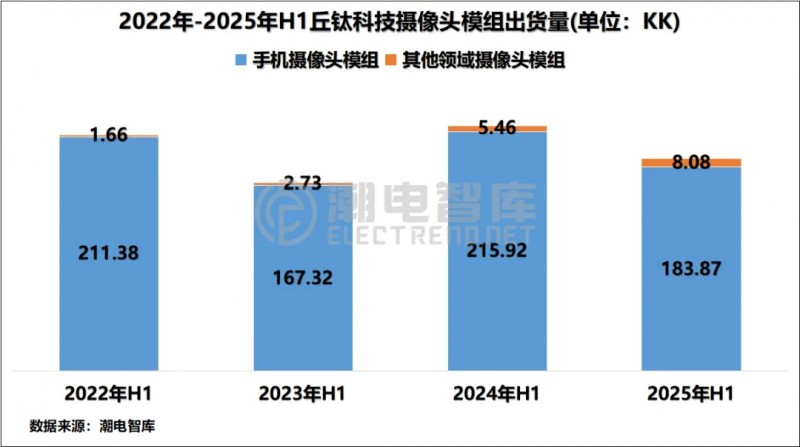 今年第二季度以來,丘鈦科技非手機攝像頭銷量連續(xù)創(chuàng)下月度新高,7月最新數據達到191.4萬顆。