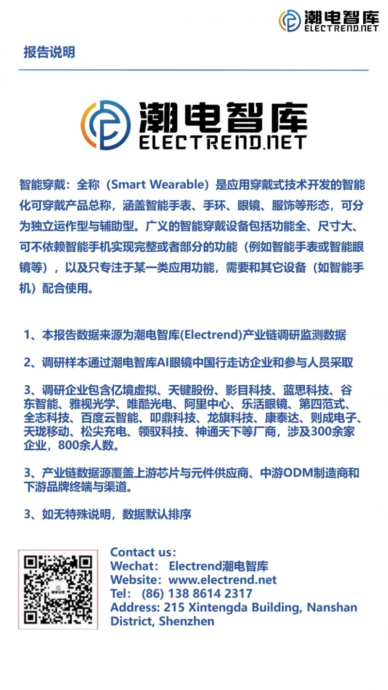 因篇幅問(wèn)題,完整版本報(bào)告需在文章末尾處,進(jìn)行掃碼填寫(xiě)后獲取下載,歡迎關(guān)注潮電智庫(kù),我們后續(xù)會(huì)針對(duì)智能穿戴供應(yīng)鏈,再度進(jìn)行發(fā)布市場(chǎng)分析報(bào)告。