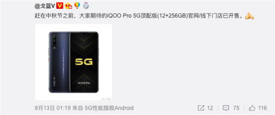 9月15日,iQOO Pro幻影藍(lán)配色正式開啟預(yù)約,配置為12G運(yùn)存+128G內(nèi)存。在8月份的發(fā)布會上,采用“Speed ART”設(shè)計(jì)理念的iQOO Pro手機(jī)宣布推出競速黑、勒芒藍(lán)、幻影藍(lán)三款全新配色,而此次幻影藍(lán)正式開啟預(yù)約,意味著發(fā)布會上的配色已經(jīng)全部推出。