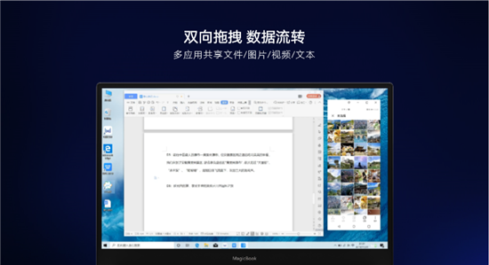 為將用戶體驗(yàn)做的更出色,榮耀MagicBook 14&15 Intel版配備了由榮耀Magic-link升級(jí)的多屏協(xié)同功能,打通PC與手機(jī)之間的交互壁壘,帶來(lái)智慧互聯(lián)的新方式。用戶只需要把手機(jī)輕輕一碰電腦右下角的Magic-link標(biāo)簽即可建立起連接,手機(jī)界面會(huì)自動(dòng)同步到PC端屏幕,實(shí)現(xiàn)跨終端的同屏操作。